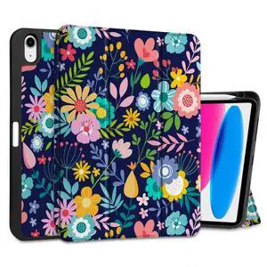 DONGKE Case for iPad 11th Generation 11 Inch 2025 (A16 Chip) & iPad 10th Generation 10.9 Inch 2022 with Pencil Holder-[Auto Wake/Sleep], Trifold Stand Soft TPU Protective Cover, Beautiful Flowers