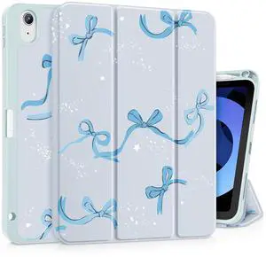Tuiklol Case for iPad Air 11 inch (M3 2025/M2 2024) 6th Gen/iPad Air 10.9 inch 5th/4th Gen 2022 2020 Release with Pencil Holder,Slim Protective Auto Sleep/Wake Trifold Stand Tablet Cover,Bow-Blue