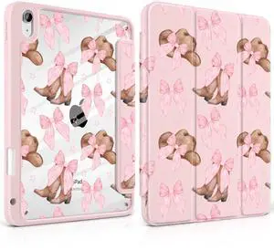 Tuiklol Case for iPad 11 inch (A16 Chip) 2025 Generation 11th / iPad 10.9 inch 2022 10th Gen,Slim Stand Hard Case Pencil Holder with TPU Back Cover & Trifold Stand & Auto Wake/Sleep, Pink White Bows