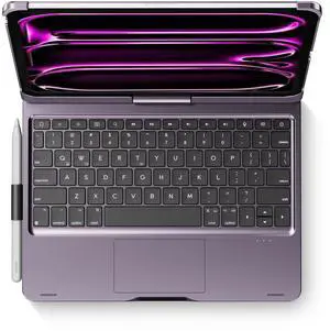 edaiser Swivel Keyboard Case for 2024 Apple iPad Pro 11 inch M4 A2836 A2837 A3006; Rotatable Cover with Pencil Holder, Multi-Touch Trackpad, RGB Backlit, Metallic Purple