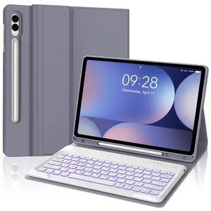Backlit Keyboard Case for Samsung Galaxy Tab S10+ Plus / S9+ Plus / S9 FE+ Plus 12.4 Inch Case with Backlight Keypad, Galaxy Tablet Folio Cover with Detachable Keypad for Samsung 12.4'' Tab, Lavender