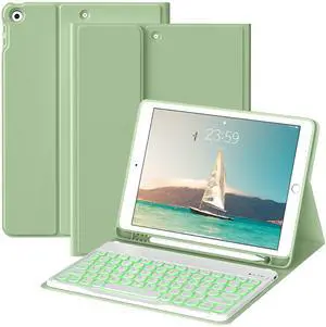 JKSML Keyboard Case for iPad 9th/8th/7th Generation(2021/2020/2019) 10.2 Inch, Case with 7 Colors Backlit Detachable Keyboard Soft TPU Back Folio Stand, Built-in Left Side Pencil Holder, Light Green