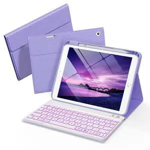 Senyoson Folio Keyboard Case for iPad 9.7 inch 6th 2018, 5th 2017, Air 2 2014 Released, Magnetic Wireless Detachable Keyboard, 7-Color Backlight, Thin & Light, Pencil Holder (Purple)