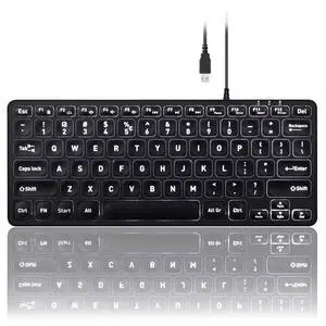 Perixx PERIBOARD-332 Wired Backlit USB Keyboard - Mini 11.22x4.57x0.83 Inches - Slim Scissor Keys with Big Font - White Illuminated LED - US English