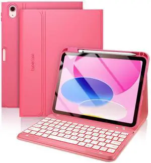 typecase Folio Keyboard Case for iPad 10th Gen 10.9 inch (2022) and iPad 11th (A16, 2025), Magnetic Wireless Detachable Keyboard, 7-Color Backlight, Thin & Light, Pencil Holder Pink