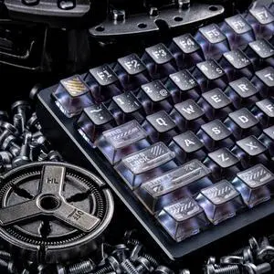 ULTRAEQUIP Frosted Clear Keycaps Cyberpunk Ruins Transparent 120 Keys PC Material Metal Pad Print Shine Through for Mechanical Keycaps 60 75 100 Percent Mechanic Keyboard