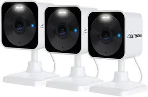 Defender GO 2K AI Powered WiFi Indoor/Outdoor Home, Business, Pet, Baby Security Camera, AI Detection, Dual Band, Spotlight/Siren, Color Night Vision, 2-Way Talk, Works with ClearVu App, 3 Pack