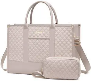 LOVEVOOK Laptop Bags for Women, 15.6 inch Waterproof Work Tote Bag with Clutch, Professional Teacher Computer Purse Lightweight Shoulder Bag Travel, Gray pink