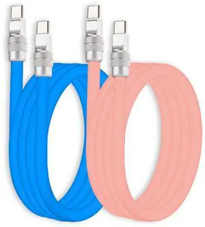 chubbycable Couple Chubby 2 Pack 240W USB C Cable Extra Thick Silicone Fast Charging Cable Compatible with iPhone 17-15 Series iPad Galaxy Series, Blue+Pink, Type-C to Type-C, 8.2FT