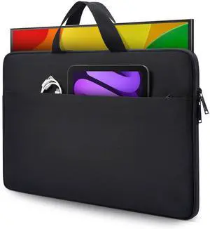 16.1/15.6 Inch Portable Monitor Case, 15.6 inch Laptop Protective Carrying Cover with PU Handle, Large Accessory Pocket and Water Resistant for Travel Monitor Bag Display Screen Sleeve, Black