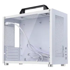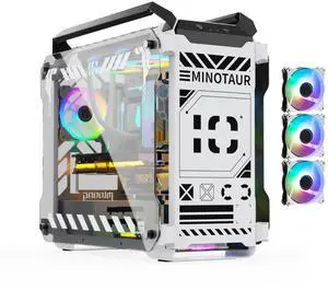 MegaPC Mino Open-Frame ATX Gaming Case Industrial Design, Tempered Glass Panels, High Airflow, ARGB Lighting, USB-C Port (Black/White/Print Stream, with Fans Only)