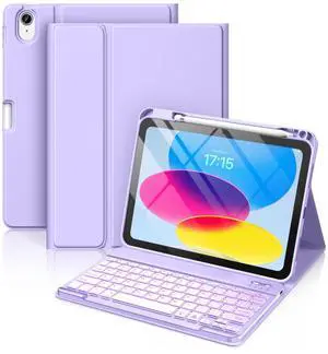 Hamile for iPad 11th 10th Generation Case with Keyboard - 7 Colors Backlit Wireless Detachable Folio Keyboard Cover with Pencil Holder for iPad 11-inch A16 2025 10th Gen 10.9 Inch 2022 (Purple)
