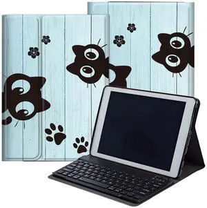 DEGDFSGR Keyboard Case for Samsung Galaxy Tab A7 Lite 8.7 Inch 2021 Model (SM-T220/T225/T227), Magnetic Closure Detachable Bluetooth Keyboard for Samsung Galaxy A7 Lite Case, Wooden Lovely Cat