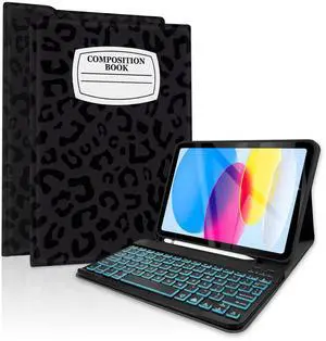 TopPerfekt for Bluetooth Keyboard iPad 10th Gen 10.9 inch (2022) case iPad (A16) 11th/ 10th Gen Case 11'' (2025) with 7-Color Backlights, Pencil Holder, Detachable, Rechargeable-noteLeopard Black
