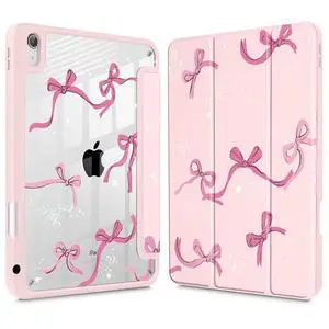 Tuiklol Case for iPad 11 inch (A16 Chip) 2025 Generation 11th / iPad 10.9 inch 2022 10th Gen, Buit in Pencil Holder with Shockproof Cover Clear Transparent Back Shell Auto Wake/Sleep, Bow-Pink