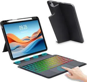 iPad Air 11 inch Keyboard Case (M2) 2024, Detachable Keyboard with Trackpad, 7 Color Backlit, Apple Pencil Charging, Smart Protection Case for iPad Air 5th/4th 10.9 & Pro 11 4th/3rd/2nd/1st Gen Black