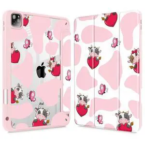 Mektron Case for iPad Pro 11 inch (4th, 3rd, 2nd & 1st Gen) 2022 2021 2020 2018, Buit in Pencil Holder with Shockproof Cover Clear Shell + Auto Wake/Sleep, Butterfly Cow