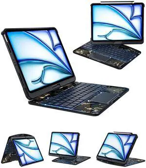 Lucrela Keyboard Case for iPad Air 13 Inch(M3/M2, 2025/2024) & iPad Pro 12.9 inch (3/4/5/6th Gen) Transparent 360Rotating Keyboard Case with Multi-Touch Trackpad,Keyboard for iPad Pro 12.9