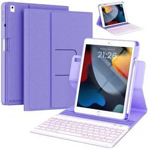 Case with Keyboard for iPad 9th 8th 7th Generation 10.2 inch,7 Rainbow Backlit Detachable Wireless Keyboard Rotatable Magnetic Cover with Pencil Holder for iPad Air 3rd Gen/Pro 10.5 Purple