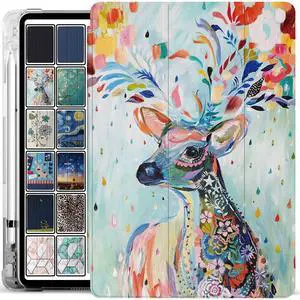 DuraSafe Cases for iPad 10.2 Inch 9 8 7 2021 2020 2019 [iPad 9th / 8th / 7th Gen ] A2197 A2270 A2602 Magnetic Trifold Printed Pencil Holder Transparent Soft Silicone TPU Back Cover - Deer Print