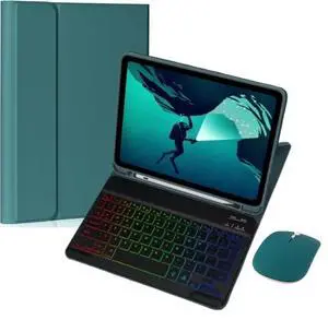Keyboard Case for iPad 9th Generation 10.2 Inch with Mouse - 7 Colors Rainbow Backlit Magnetic Detachable Keyboard Cover with Pencil Holder for iPad 8th/7th Gen/Pro 10.5"/Air 3rd Gen,Teal