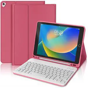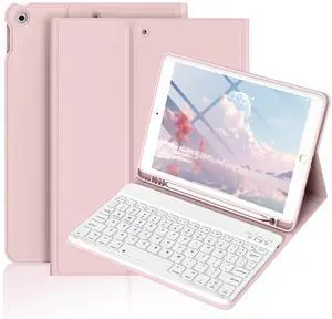 BQDIYOO Case with Keyboard Available in Multiple Styles and Colors Keyboard Case for iPad 9th/8th/7th Generation(2021/2020/2019), 10.2 inch iPad 9/8/7 Cover with Pencil Holder,Auto Wake Sleep,Pink