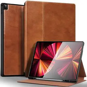 Gexmil Leather Case for iPad Pro 12.9 Inch, 2nd/1st Generation(2017/2015), Premium Leather Cover with Pencil Holder,Cowhide Folio Cover Auto Sleep/Wake,Anti-Fingerprint,Vegetable Tanned Brown