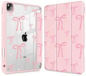 May Chen for iPad Pro 11 inch M2 4th Generation 2022, iPad Pro 11 3rd/2nd/1st Gen, Case with Transparent Shockproof Back Cover [Built-in Pencil Holder, Auto Sleep/Wake, Pink Bows P721