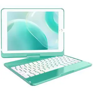 PboyiqiS Keyboard Case for iPad 6th/5th Generation, Case for 9.7 inch iPad6/iPad5/Air2/Pro9.7 Keyboard with Mouse, Cute Round Key Detachable Keyboard Case with Pencil Holder, Teal