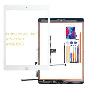 A-MIND for iPad 9 10.2" 2021 Screen Replacement, for iPad 9th Generation A2602 A2603 A2604 A2605 Touch Screen Digitizer Glass Panel Lens Repair Kits(Not LCD) (White,with Home Button)