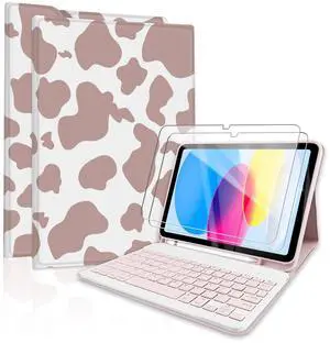 TopPerfekt for Bluetooth Keyboard iPad 10th Gen 10.9 inch (2022) case (A16) 11th/10th Gen Case 11''(2025) Case with Screen Protector, Pencil Holder with 2 Pack 9H Hardness Tempered Glass - Pink Cow