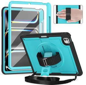 Timecity Case for iPad Pro 13 Inch M4 2024 7th Generation(Model: A2925, A2926, A3007) with Screen Protector, 360 Rotating Stand, Shoulder Strap, Support Pencil Wireless Charging, Sky Blue