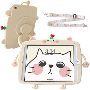 oleaumfilter for New iPad Pro 11 Inch Case M4(2024, 5th Generation) with 360 Rotating Handle Stand Strap Pencil Holder Cute Cat Silicone Protective Tablet Cover for iPad Pro 11 Inch -White