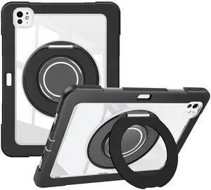 Dteck for iPad Pro 11 inch (M4/M5) 2024/2025 Release Shockproof Clear Case with Stylus Pencil Holder/Rotating Kickstand/Swivel Handle, Lightweight Protective Slim Transparent Tablet Cover Shell, Black