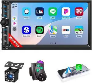 7'' Double Din Car Stereo with Wireless Apple CarPlay & Android Auto, Car Audio Receivers, IPS Touch Screen FM Radio, Mirror Link, Bluetooth 5.2, SWC, HD Backup Camera, GPS Navigation, TF/USB/AUX