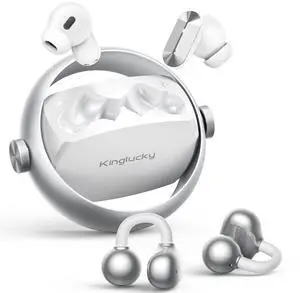 Kinglucky 2-in-1 Wireless Earbuds, Noise Cancelling in-Ear Earbuds & Open Ear Clip-On Earbuds Comfortable fit, Relay Power Swap Charging Up to 50H Bluetooth 5.4 Wireless Headphones Ear Buds, White
