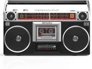 Riptunes Boombox Radio Cassette Player Recorder, AM/FM -SW1/SW2 Radio, Wireless Streaming, USB/Micro SD Slots, Aux in, Headphone Jack, Classic 80s Style Retro, Black