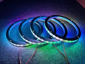 4PCS 15" Car LED Speaker Ring Lights Decorative Light Kit Dream Color Chasing Flow Series + RGB Spacer Ring Light Coaxial Speaker Lights Bluetooth App & Remote Controlled (4PC-CHASE-15'')