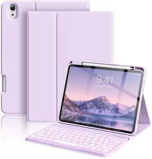 aoub Keyboard Case for iPad 11th (A16) / 10th Generation 11/10.9 Inch 2025/2022 with Pencil Holder - 7 Colors Backlit, Wireless Detachable Folio Keyboard Soft TPU Back Cover - Purple