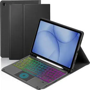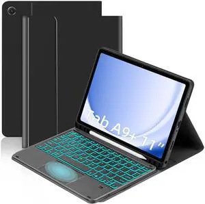 Touchpad Keyboard Case for Samsung Galaxy Tab A11 Plus/A9 Plus 2025/2023 11 inch, 7-Color Backlight Type-C Charging Keyboard with Pencil Holder Cover Fit Tablet A11+/A9+ (Black)