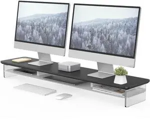 Fenge Acrylic Monitor Stand Riser, 42.5 Inches Dual Monitor Stand with Metal Storage, 2 Tier Acrylic Computer Riser for Desk, Clear Laptop Stand for PC, Laptop, Printer, TV, Black