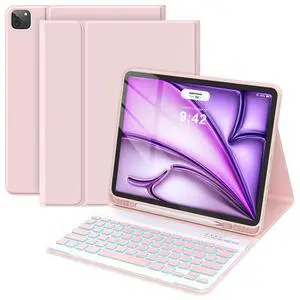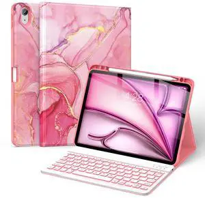 Soke Keyboard Case for iPad Air 11 Inch(M3 2025/M2 2024) & Air 5th/4th Generation - 7 Color Backlit Detachable Keyboard Cover with Pencil Holder, Watermelon Marble