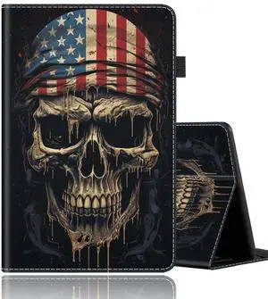 Case Fits All-New Kindle Fire HD 10 & 10 Plus Tablet (13th/11th Generation, 2023/2021 Release) 10.1", Durable Shockproof Protective Cover with Auto Wake/SleepAmerican Flag Skull