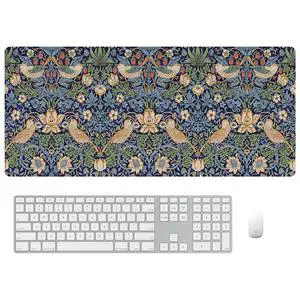 William Morris Floral Mouse Pad,Vintage Floral Bird Computer Desk Mat,XL Gaming Mousepad 31.5x15.7in,Desk Mat for Desktop with Non-Slip Rubber Base,Navy Blue Keyboard Mat for Office Table Decor