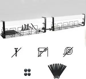 Under Desk Cable Management Tray No Drill 2pack Kit- 15.7'' Long 5.1'' Wide Tray, Steel Cord Organizers, 4 Cable Holder, 12 Roll Cable Organizer Straps, No Drill, No Damage to Desk(Black)