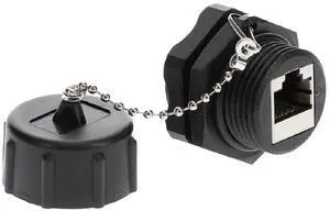 InstallerParts Cat6 RJ45 Shielded Industrial Panel Mount Bulkhead Female/Female Feed Thru Coupler - Network Connectors - IP67 Waterproof/Dust Cap, 5 Pack, Black
