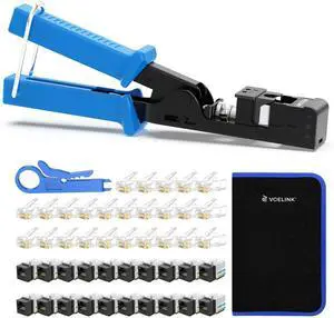 VCELINK Speed Termination Tool for VCE 90-Degree Keystone Jacks Punch Down Network Tool Kit with 20-Pack CAT6 Keystone Jacks UL-Listed Black, 25-Pack RJ45 Connectors, and 1-Pack Mini Wire Stripper
