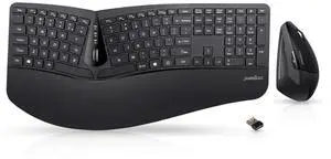 Perixx Periduo-605, Wireless Ergonomic Split Keyboard and Vertical Mouse Combo, Adjustable Palm Rest and Membrane Low Profile Keys, Black, US English Layout (11633)