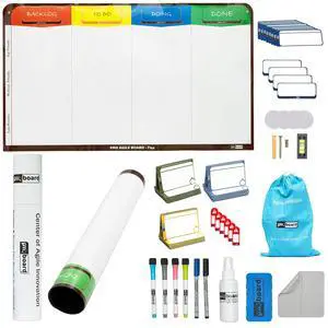 pmxboard 4 Column Magnetic Kanban Board, Scrum Board Flex Whiteboard Kit. Agile Kit, 64 Magnetic Kanban Cards Kit, Scrum Cards Set. Project Management Board for Project Planning, Kanban Whiteboard Kit