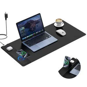 Wireless Charging Mouse Pad with Foldable Phone Holder, 31.5" x 15.8" XXL Large Desk Pad, Gaming Mousepad with Ultra-Smooth Surface, Non-Slip Base, Black Waterproof Desk Mat, with 20W PD Charging Kit